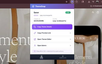 ThemeSnap for Shopify, Shopify vitrinleri üzerinde çalışan geliştiriciler, ajanslar ve temalarını düzenleyen tüccarlar için tasarlanmış hafif bir uzantıdır. Bu araç, bir mağazada açıldığında, gerekli tema ve mağaza bilgilerini hızlıca sunarak, yöneticiden geçmek veya URL'leri elle yeniden oluşturmak zorunda kalmadan işlemleri kolaylaştırır. Uzantı, temanın adı, şeması, versiyonu ve tema kimliği gibi bilgileri tek bir yerde toplar, ayrıca yayında mı yoksa taslak mı olduğunu gösteren bir gösterge sunar. Ayrıca, kullanıcılar paylaşılabilir önizleme bağlantıları kopyalayabilir, tema ayrıntılarını hızlıca kopyalayabilir ve Shopify yönetim paneline geçiş yapabilirler.